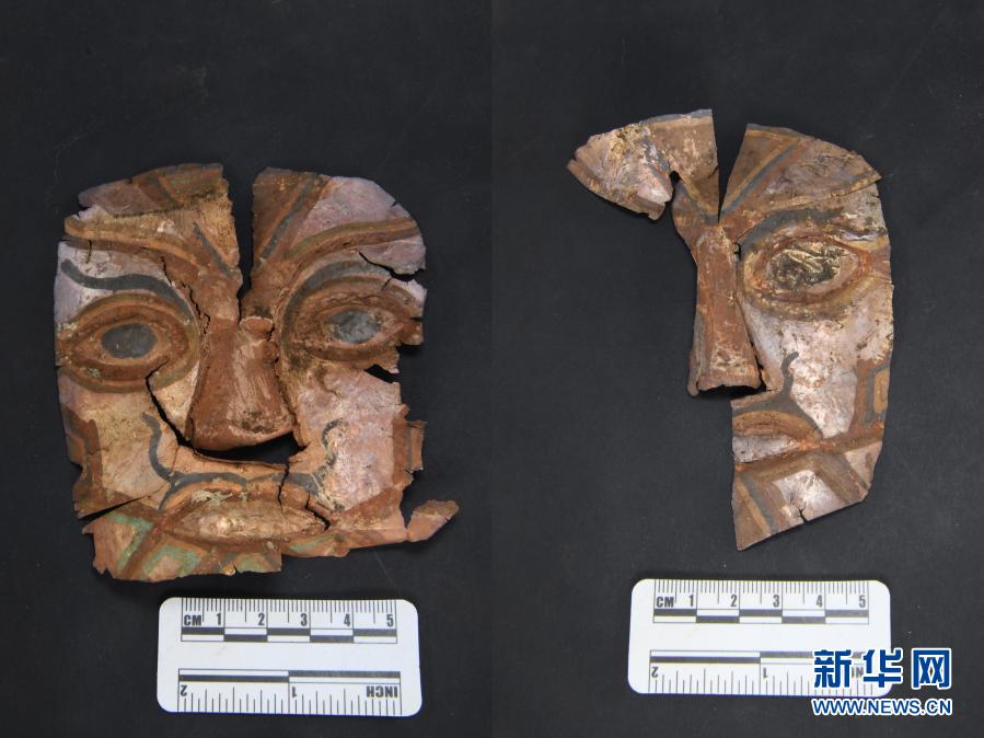 桑達隆果墓地出土的面飾(資料照片)。新華社發
