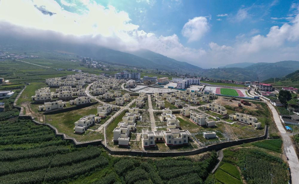 這是9月1日在四川省涼山彝族自治州喜德縣魯基鄉中壩村拍攝的易地扶貧搬遷安置點(無人機照片)。新華社記者 王曦 攝