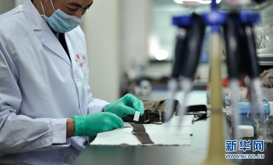 山東省濱州市公安局民對“2004.11.24”故意殺人案物證進行DNA檢材提?。ㄙY料照片)。新華社發(公安部刑偵局供圖)
