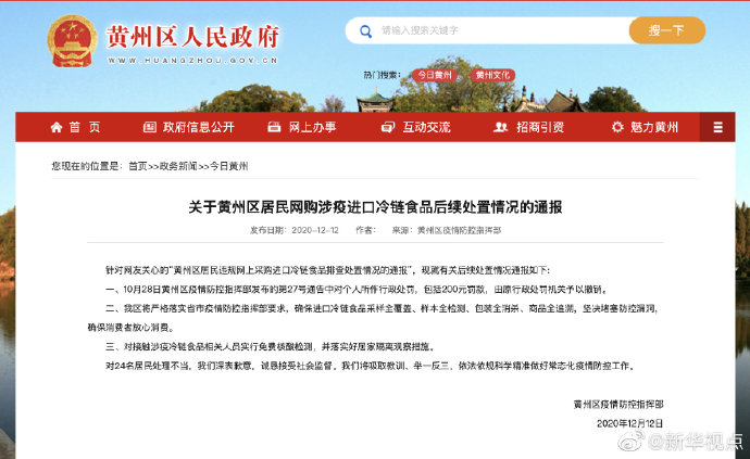 湖北省黃岡市黃州區(qū)人民政府網(wǎng)站12日發(fā)布通報,撤銷對網(wǎng)購涉疫進(jìn)口冷鏈?zhǔn)称穫€人所作的行政處罰,包括200元罰款。 ????