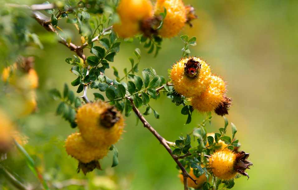 ????金秋時節(jié),在貴州省黔南州貴定縣的刺梨基地里,沉甸甸的刺梨碩果掛滿枝頭。石銀超 攝