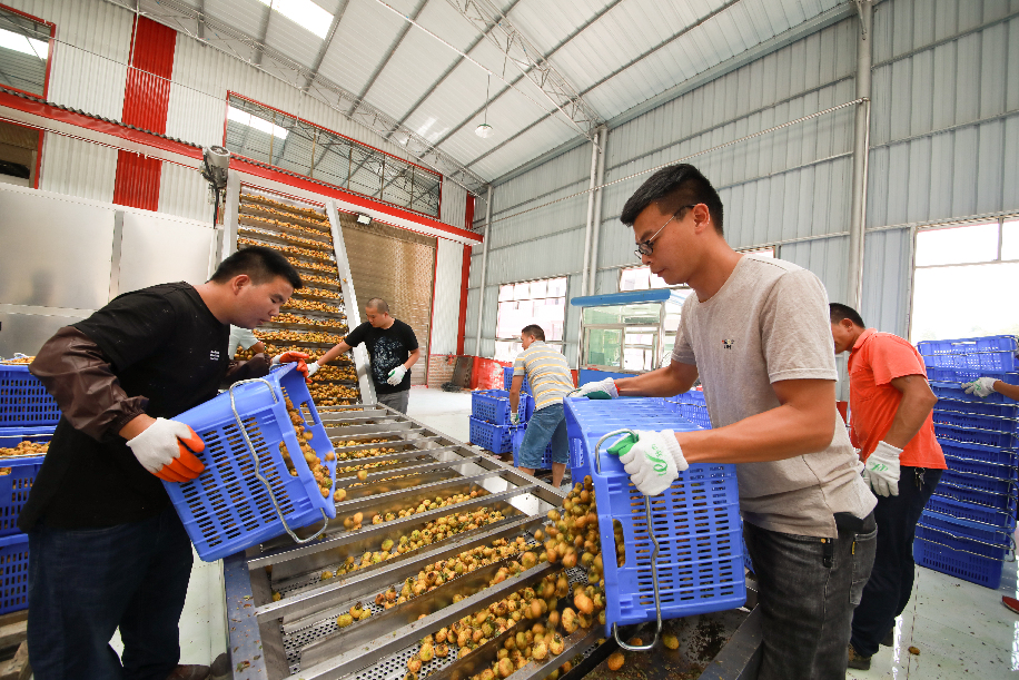 ?????貴州省黔南州貴定縣刺梨加工廠里,工人正忙著進(jìn)行刺梨加工。石銀超 攝