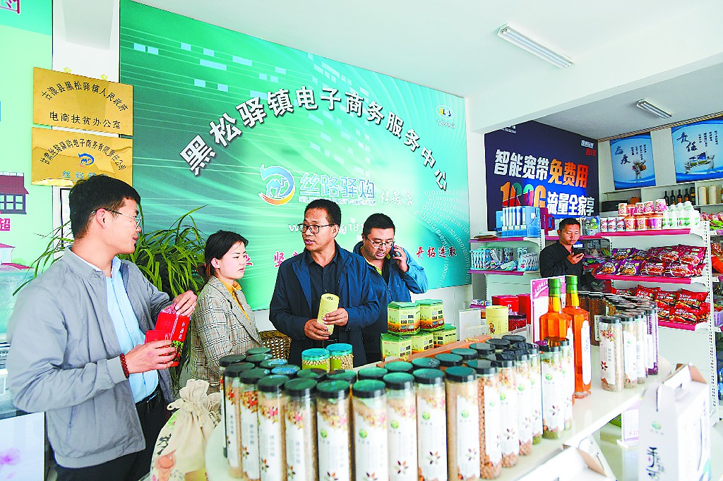 ????張開青(中)在電商服務中心了解農(nóng)產(chǎn)品銷售情況。呂亞龍 攝