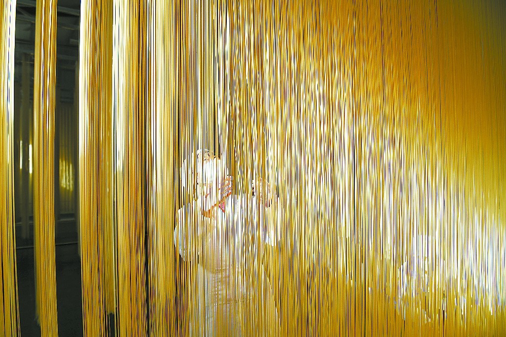 ????在扶貧車間里,村民田國林正在晾曬掛面。呂亞龍 攝