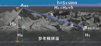 1847年,英屬印度測量局在離珠峰300多公里外的恒河平原上,利用三角高程測量方法對珠峰高度進(jìn)行了首次測量,測得高程為8778米。所謂三角高程測量方法,就是在位于山腳的地面測站架設(shè)光學(xué)測量儀器,專業(yè)測量人員照準(zhǔn)珠峰峰頂雪面,測量地面測站到峰頂?shù)木嚯x,再測量峰頂?shù)母叨冉牵簿褪怯^測視線與水平面之間的夾角,最后按照三角函數(shù)關(guān)系計算出珠峰高度。