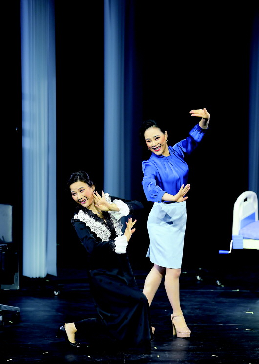 當《梁祝》漸變為《云水渡》主旋律,在滿臺絲綢瀲滟與氤氳霧氣中,時光返照回柯鴻的夢境。天海集團董事長張天賜的歸家路變成黃泉路,妻子柯鴻仍在倚門癡望。《梁祝》中墓葬合上告全劇終結,新劇中陰陽兩隔卻是嶄新的開始——這是編劇兼導演李卓群的構思巧妙之處。