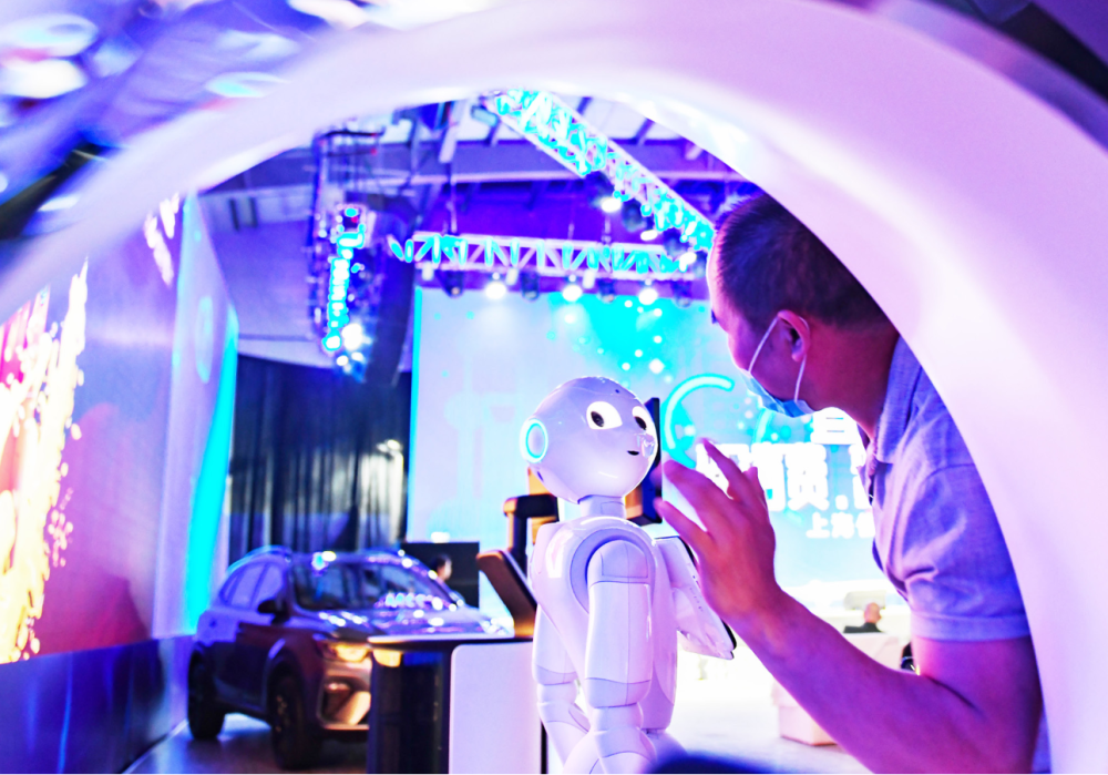 5月17日,上海信息消費云峰匯現場的智能機器人