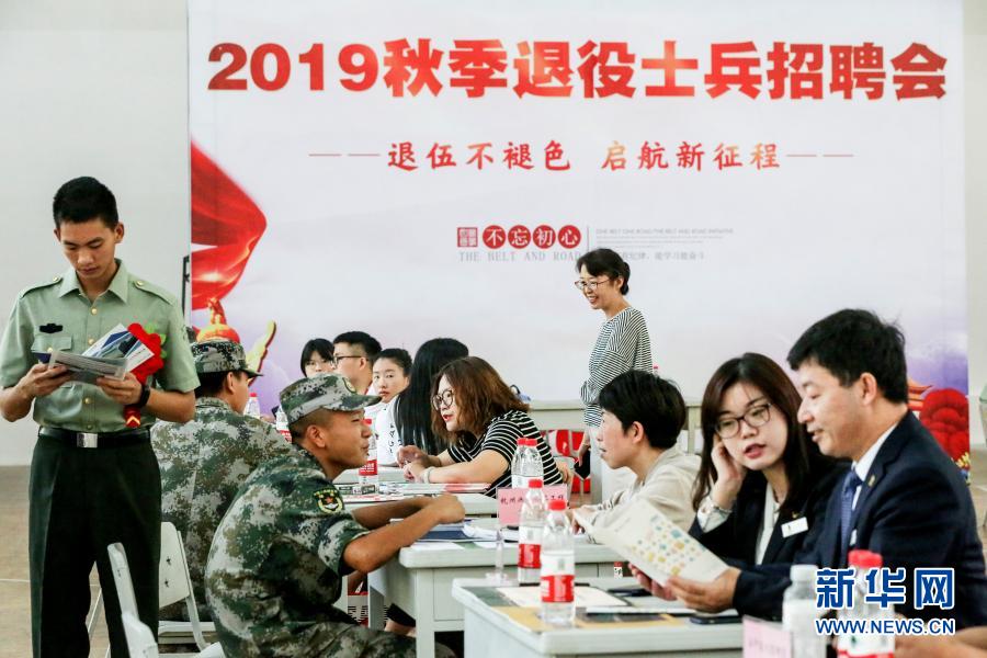 陸軍第72集團軍某旅與地方政府合作舉行秋季退役士兵招聘會(2019年8月30日攝)。新華社發(莊林毅 攝)