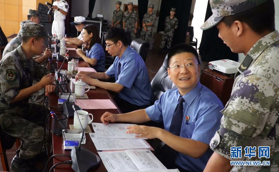 陸軍第72集團軍某旅開展軍地聯合送法下基層活動,官兵現場咨詢法律常識(9月16日攝)。新華社發(莊林毅 攝)