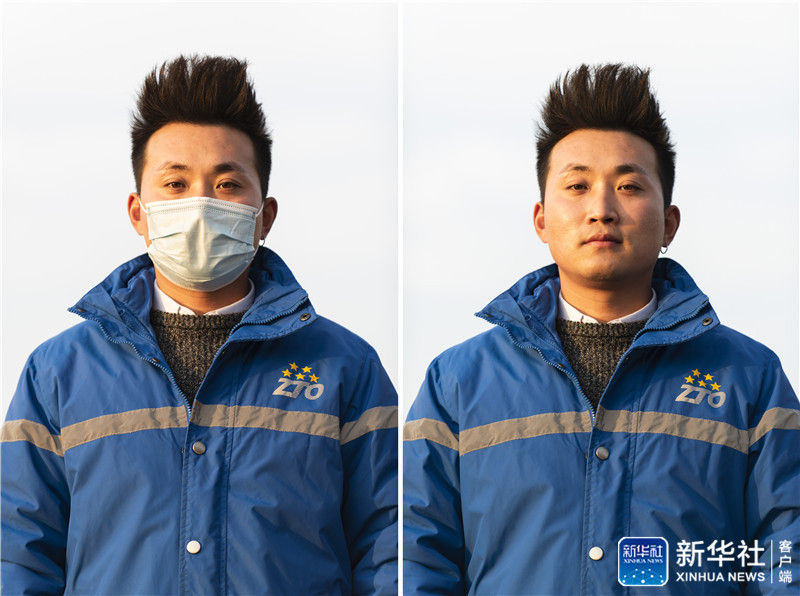 12月10日拍攝的中通快遞北京廠洼路網點的快遞員李杰肖像(拼版照片)。新華社記者 張豪夫 攝