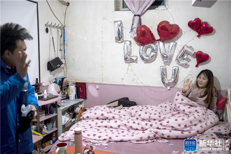 他們的小家里,桌上放著紅酒、蠟燭,墻上掛有投影儀,還貼著“Love U”字樣的飾品。
