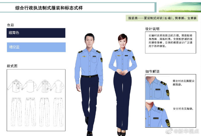 【這些綜合行政執法部門將統一著裝,你喜歡嗎?】財政部、司法部日前印發《綜合行政執法制式服裝和標志管理辦法》,明確加強生態環境保護、交通運輸、農業、文化市場、應急管理、市場監管等綜合行政執法制式服裝和標志管理。這6支綜合行政執法隊伍將統一著裝,不同執法隊伍通過標志中的名稱和圖案加以區分,徹底解決長期以來不同執法部門著裝五花八門的問題。來看看這些“新衣”預覽吧?。ㄓ浾呱赇?、白陽)