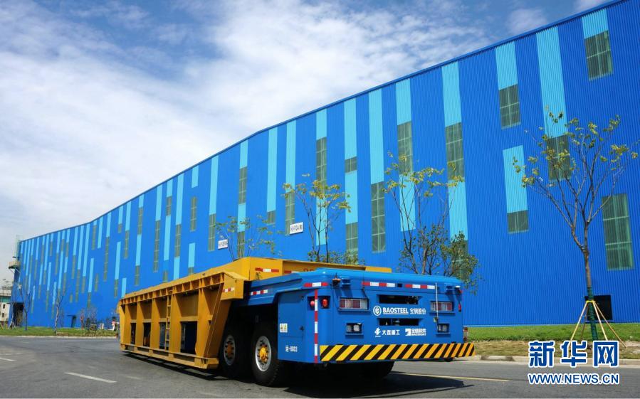 這是中國寶武寶鋼股份上海寶山基地的無人駕駛重載框架車及無人倉庫(資料照片)。新華社發(寶武集團供圖)