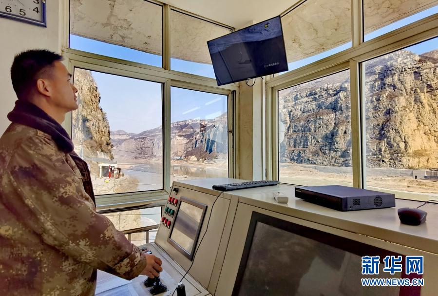 龍門水文站工作人員在纜道操作機(jī)房?jī)?nèi)操控纜道進(jìn)行流量測(cè)驗(yàn)(12月27日攝,手機(jī)照片)。新華社記者 劉詩(shī)平 攝