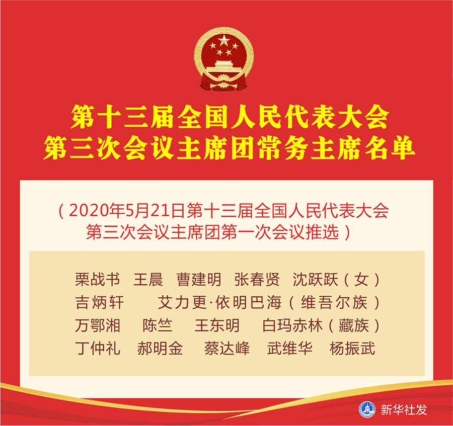 (2020年5月21日第十三屆全國人民代表大會第三次會議主席團第一次會議推選)