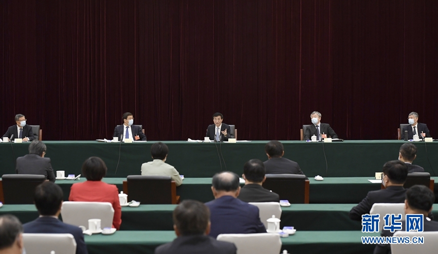 5月23日,中共中央政治局常委、中央書記處書記王滬寧看望出席全國政協十三屆三次會議的體育界、醫藥衛生界委員并參加討論。 新華社記者 岳月偉 攝
