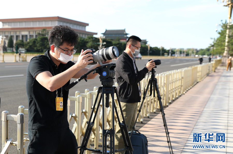 ??? 5月24日,全國政協十三屆三次會議第二次全體會議在人民大會堂舉行。圖為媒體記者在人民大會堂東門外拍攝。新華網 翟子赫 攝