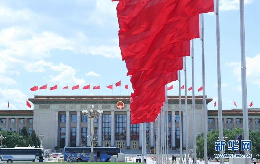 5月27日,中國(guó)人民政治協(xié)商會(huì)議第十三屆全國(guó)委員會(huì)第三次會(huì)議在北京人民大會(huì)堂舉行閉幕會(huì)。這是天安門廣場(chǎng)上紅旗飄揚(yáng)。 新華網(wǎng) 翟子赫 攝