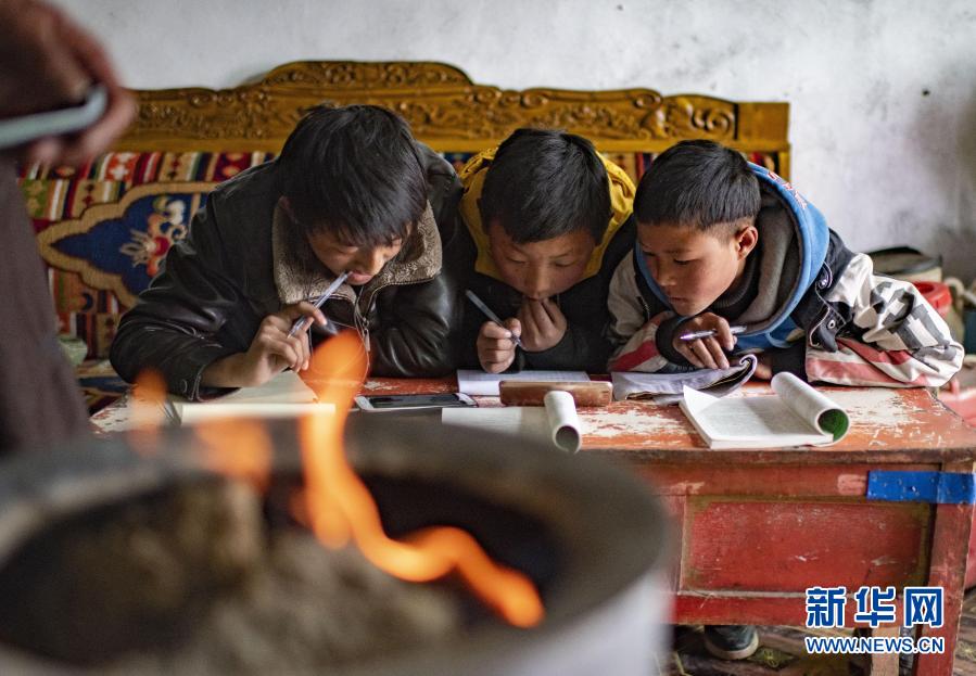 2020年3月6日,西藏當雄縣烏瑪塘鄉(xiāng)巴嘎村的孩子在上網(wǎng)課。