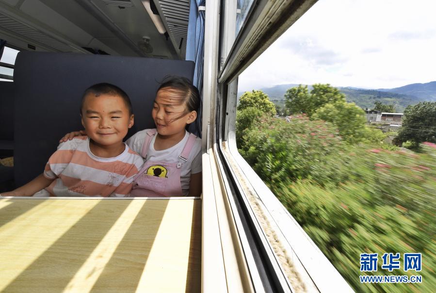 2020年8月14日,吳思語(yǔ)(右)帶著弟弟吳思遠(yuǎn)乘坐“小慢車(chē)”前往西昌走親戚。穿越四川涼山彝族自治州往返于普雄和攀枝花之間的5633/5634次列車(chē),全列13節(jié)車(chē)廂,走滿(mǎn)全程353公里需要9個(gè)多小時(shí)。慢悠悠的火車(chē)沿途要停靠26個(gè)站,如同一座流動(dòng)的村莊,盡自己最大能力解決沿途百姓出行問(wèn)題。