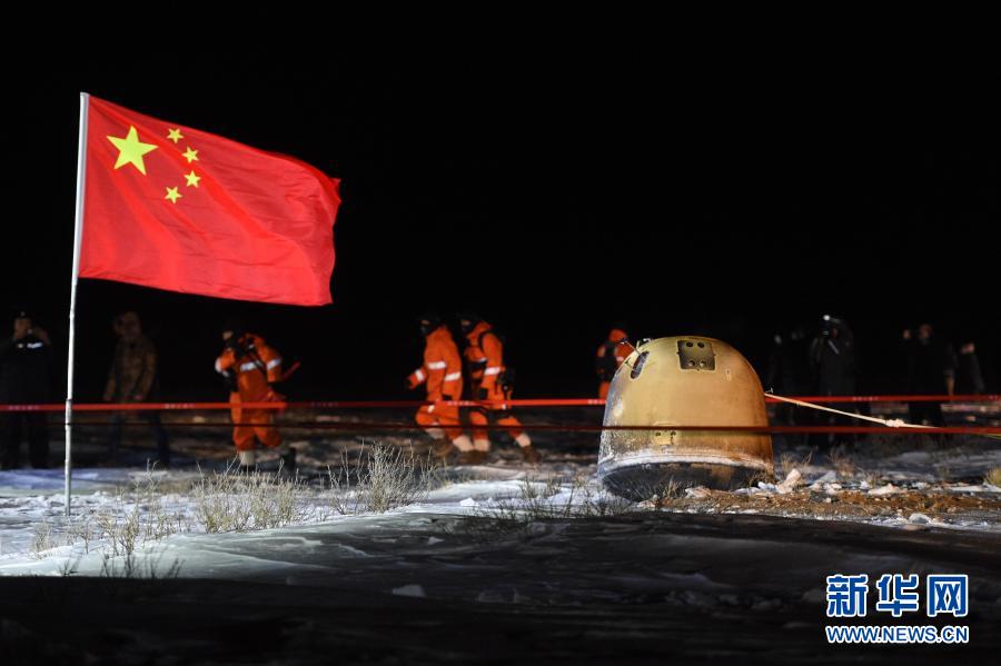 2020年12月17日凌晨,嫦娥五號返回器攜帶月球樣品,采用半彈道跳躍方式再入返回,在內蒙古四子王旗預定區域安全著陸。新華社記者 連振 攝