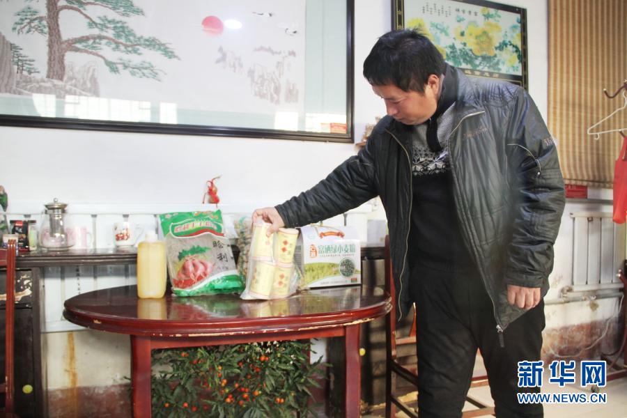 1月3日,在山東高唐縣清平鎮高寨村,于福強在整理家中等待出售的當地土特產。新華社記者 陳灝 攝
