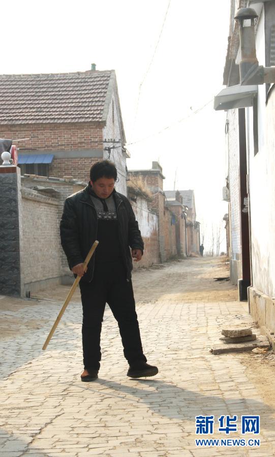 1月3日,在山東省高唐縣清平鎮高寨村,于福強在村內行走。新華社記者 陳灝 攝