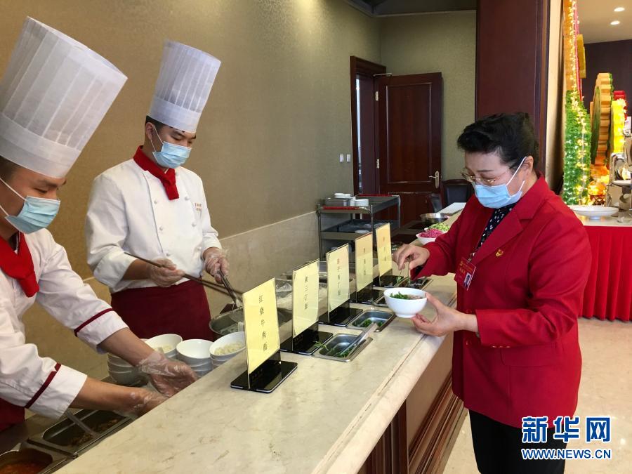 2020年10月29日,受邀列席黨的十九屆五中全會(huì)的基層社區(qū)工作者吳亞琴在京西賓館餐廳取了一份小碗面。她表示:“盛面的碗也都是小碗,吃多少打多少。”新華社記者 朱基釵 攝