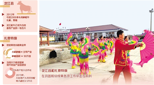 龍江縣是著名的雜糧產(chǎn)區(qū)、畜牧大縣。如今,龍江和牛已成為龍江縣畜牧產(chǎn)業(yè)的一張名片,帶領(lǐng)群眾走上致富路。“我們研究制定了《高檔肉牛優(yōu)勢(shì)特色產(chǎn)業(yè)集群建設(shè)方案》,從2016年起出臺(tái)了扶持政策。”龍江縣委副書(shū)記孫立軍告訴記者,當(dāng)?shù)匾龑?dǎo)企業(yè)與農(nóng)戶合作養(yǎng)牛,農(nóng)戶每購(gòu)買(mǎi)兩頭母牛,政府會(huì)給予一定的補(bǔ)貼款。此外,政府還向企業(yè)采購(gòu)凍精幫助農(nóng)戶繁育小牛,小牛犢生長(zhǎng)到6個(gè)月達(dá)標(biāo)后,由企業(yè)統(tǒng)一收購(gòu),價(jià)格在1.2萬(wàn)元至1.4萬(wàn)元不等。