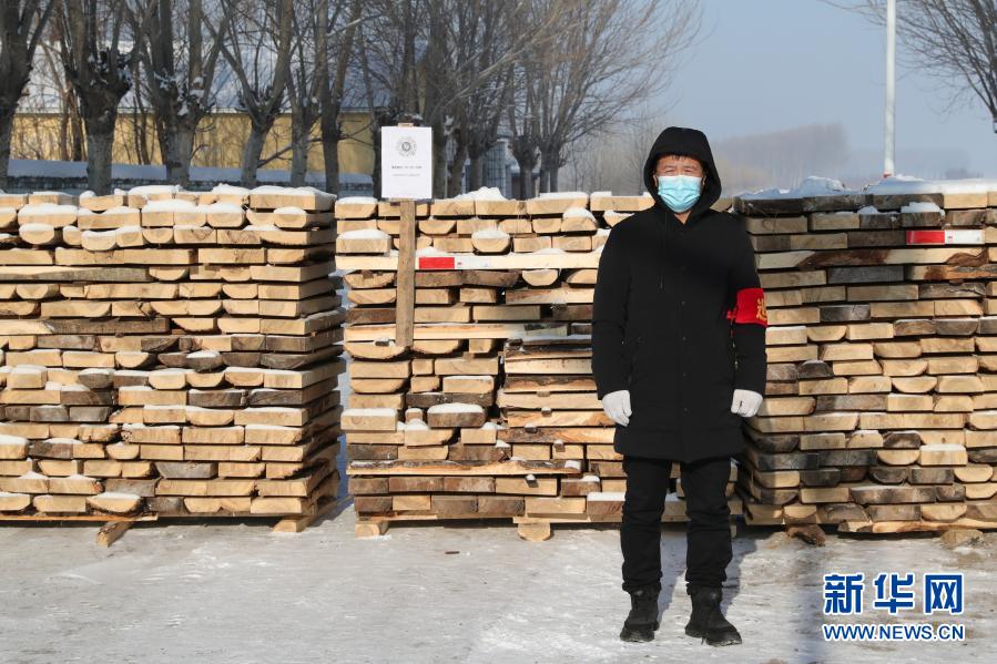 1月15日,在黑龍江省綏化市望奎縣后三鄉廂白七村,巡邏員在村頭值班。新華社發(張濤 攝)