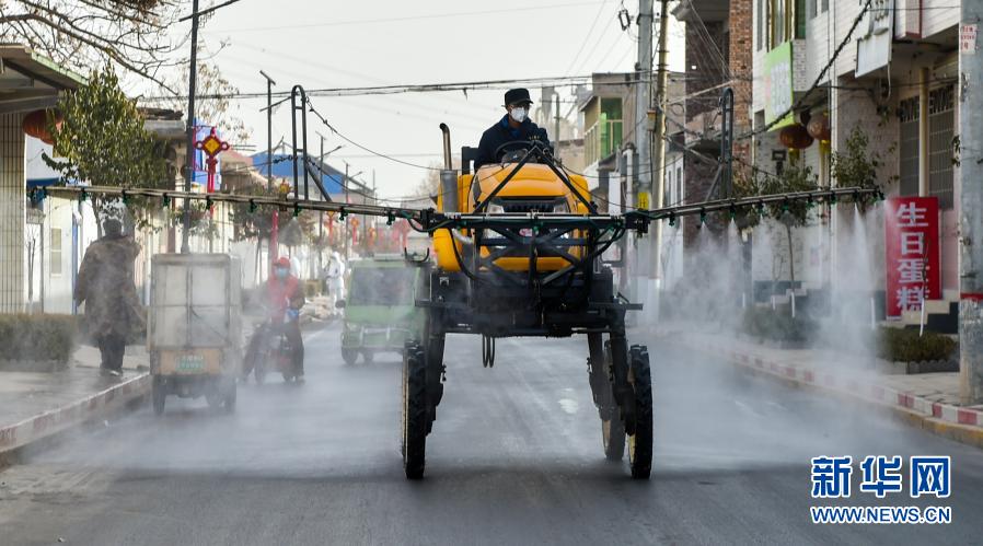 1月15日,在河北省石家莊市藁城區禪房村,防疫工作人員使用農用噴霧機進行消殺。新華社發(趙杰 攝)