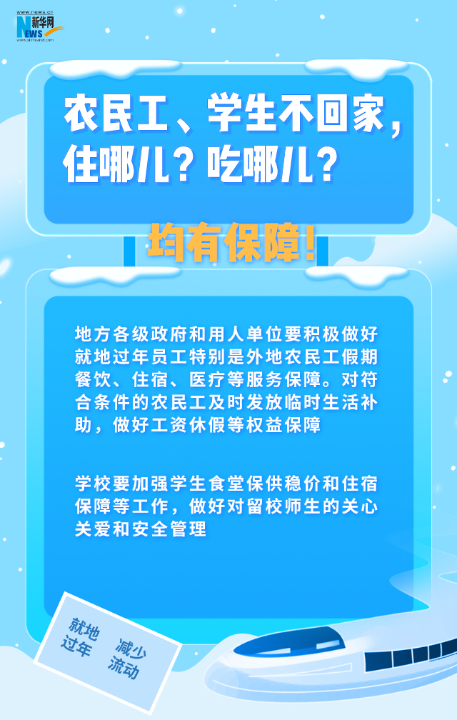 2021年春節假期將近。為減少疫情傳播風險,國家提倡大家就地過年,減少流動。已經訂好的火車票、機票怎么辦?商超、快遞都正常營業嗎?還能出去玩耍嗎?農民工、在校學生怎么辦?空巢老人、留守兒童怎么辦?27日上午,國務院聯防聯控機制召開新聞發布會,結合中辦國辦印發的《關于做好人民群眾就地過年服務保障工作的通知》,對大家關心的多個問題做出解答。