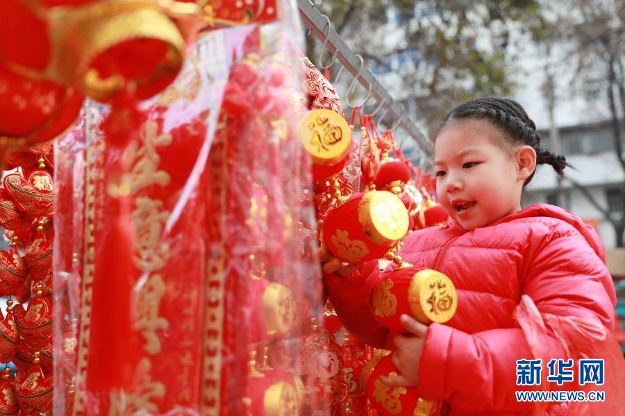 2月10日,一名小朋友在安徽省淮北市一年貨市場挑選新年飾品。新華社發(萬善朝 攝)