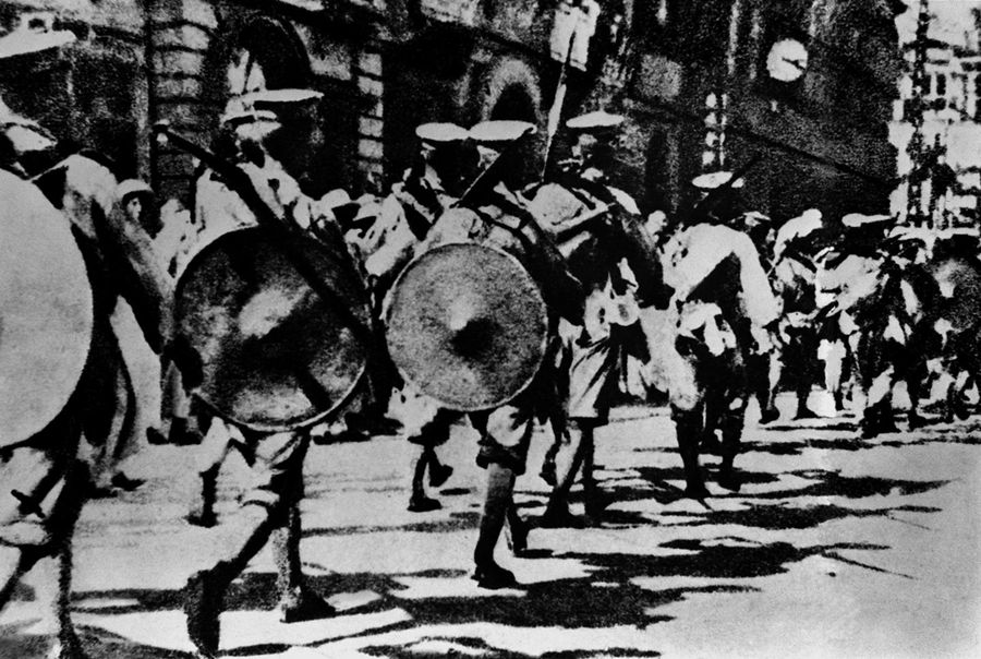 圖為武漢革命軍1927年1月3日進入漢口英租界進行接管的情形 新華社圖片