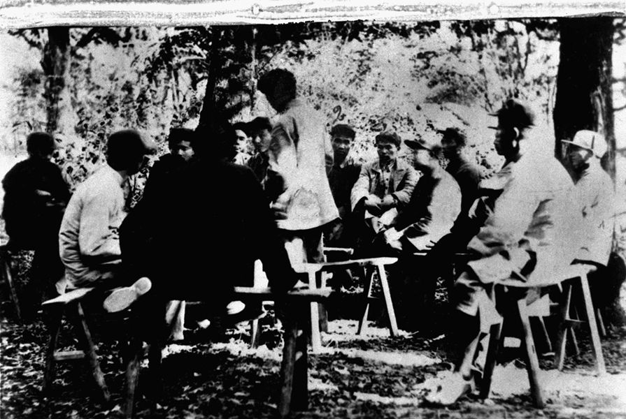 中央執行委員會舉行第一次會議,中間站著講話的是毛澤東 新華社圖片