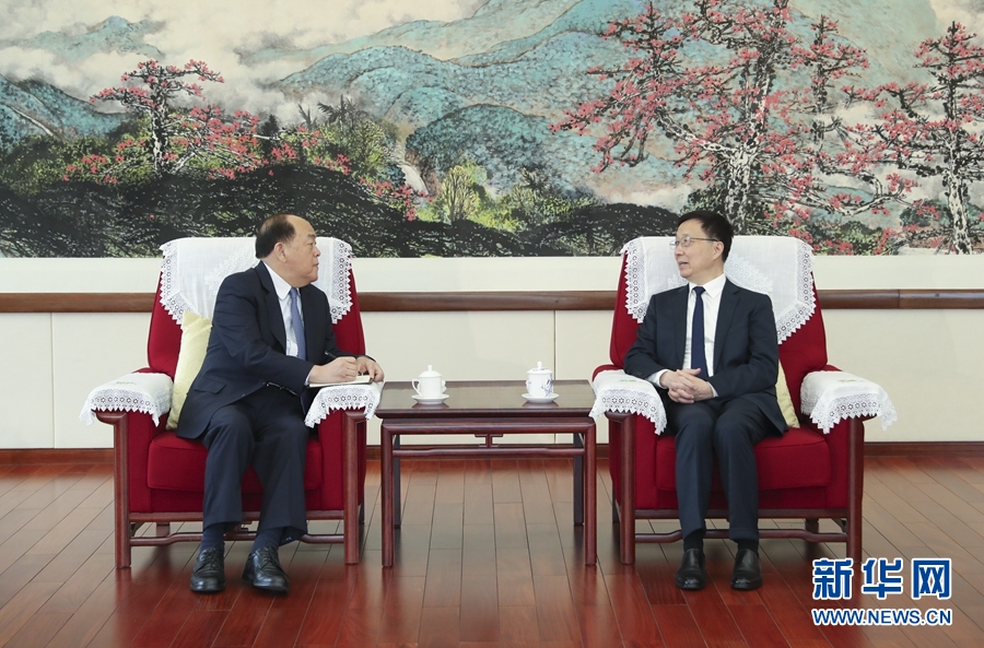 韓正充分肯定了香港、澳門特別行政區政府近期的工作。他表示,全國人大關于完善香港特別行政區選舉制度的決定和全國人大常委會對香港基本法附件一和附件二的有關修訂,為落實“愛國者治港”原則、確保香港長治久安提供了堅實的法律保障,香港特別行政區要抓緊做好本地立法相關工作,組織好今明兩年系列選舉。澳門也要全力做好第七屆立法會換屆選舉工作。香港、澳門都要繼續把疫情防控作為推動經濟復蘇和民生改善的首要工作,中央政府將一如既往給予全力支持。要認真落實好中央賦予前海、橫琴和河套地區的支持政策,進一步創新和完善體制機制,發揮好港澳獨特優勢,共同推進大灣區建設,保持香港、澳門的長期繁榮穩定,促進“一國兩制”成功實踐不斷向前發展。