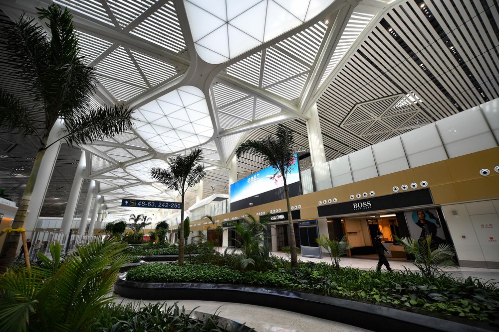 海口美蘭國際機場二期擴建項目T2航站樓內景。(新華社記者郭程2020年12月27日攝)