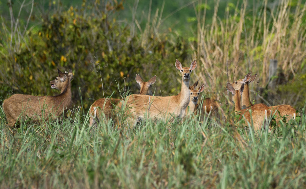 在海南邦溪坡鹿自然保護區,坡鹿在保護區內駐足休息。(新華社記者楊冠宇2020年4月3日攝)