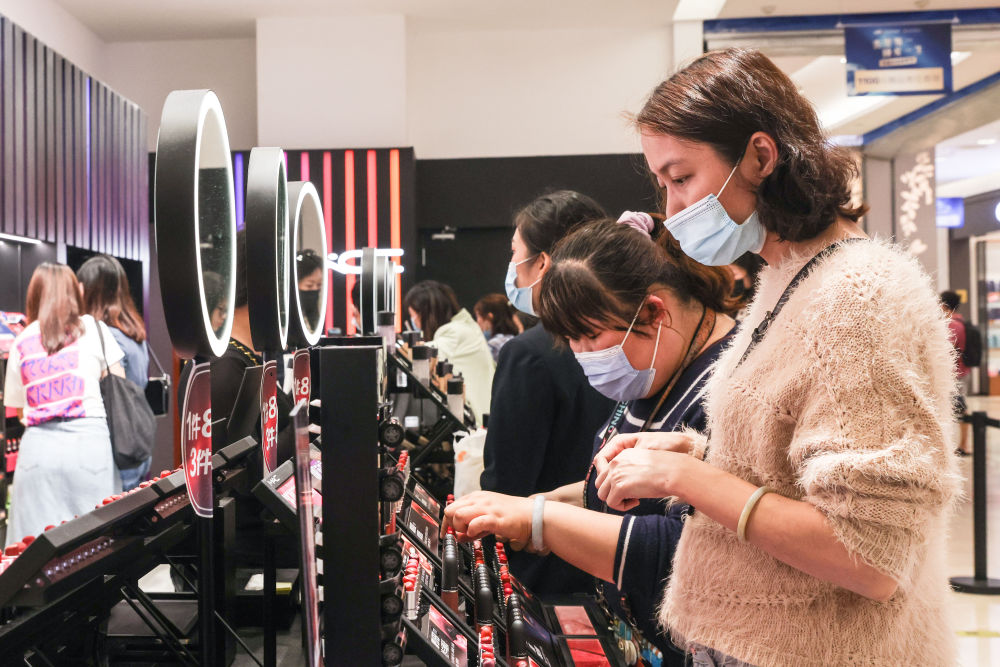 消費者在海口日月廣場免稅店購物。(新華社記者張麗蕓2021年3月25日攝)