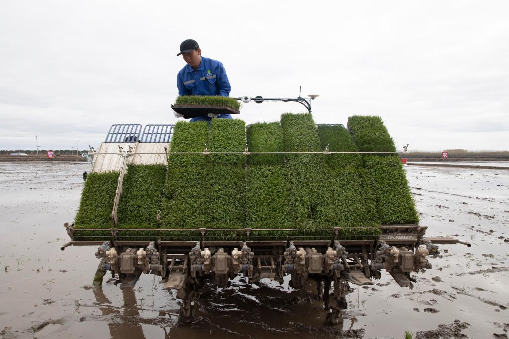 5月18日,在我國“東極”撫遠市的玖成水稻種植專業合作社,一臺臺高速插秧機正在水稻田中作業。合作社理事長袁勝海說,五年來,合作社逐步發展壯大,社員由原來的38戶82人發展到124戶336人,水稻平均畝產從1000斤提高到1100斤左右,還把“玖成鮮米”銷往北京、江蘇等地。