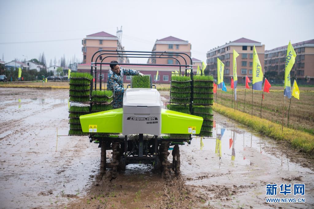 在湖南省益陽市沅江市草尾鎮沅江現代農業技術研發基地,工作人員演示插秧機操作(2021年3月2日攝)。新華社記者 陳思汗 攝