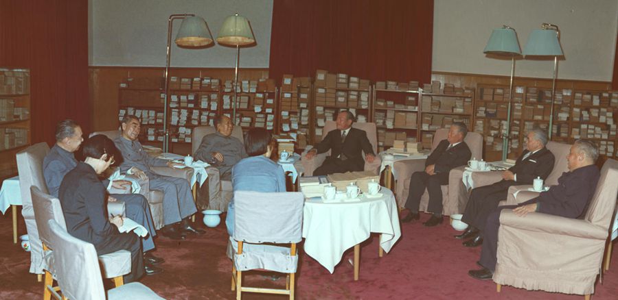 毛澤東主席會見日本國內閣總理大臣田中角榮。新華社圖片