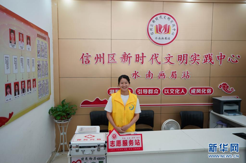 江西省上饒市信州區新時代文明實踐中心水南畫眉站的工作人員在值班(7月22日攝)。新華社記者 邢廣利 攝