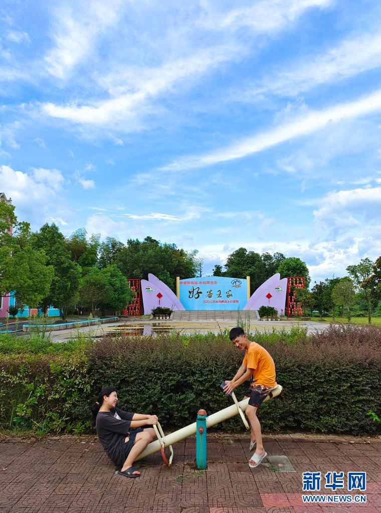 年輕人在江西省上饒市橫峰縣百家村的好客王家自然村玩耍(7月24日攝,手機照片)。新華社記者 邢廣利 攝