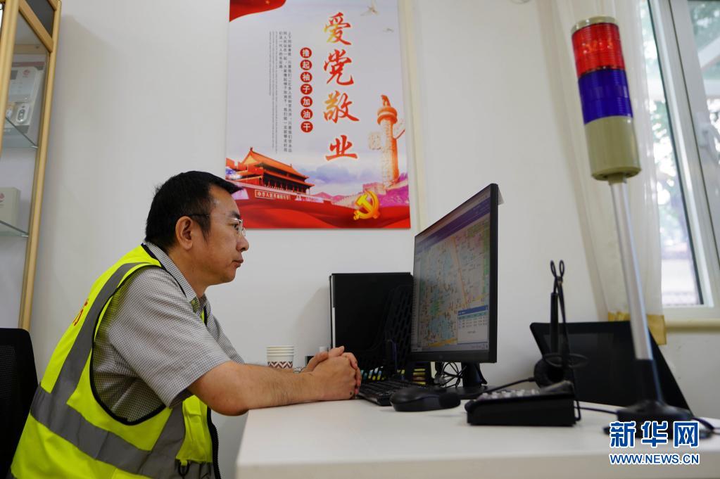 工作人員北京市海淀區學院路街道石油共生大院進行安全監測(7月27日攝)。新華社記者 邢廣利 攝