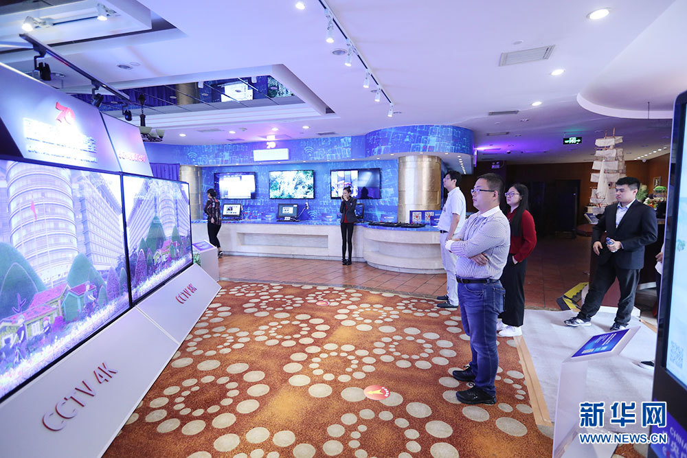9月24日,慶祝中華人民共和國成立70周年活動新聞中心在北京梅地亞中心二層新聞發布廳舉辦第一場新聞發布會。圖為新聞中心設立的融媒體體驗室。新華網 雷東瑞 攝
