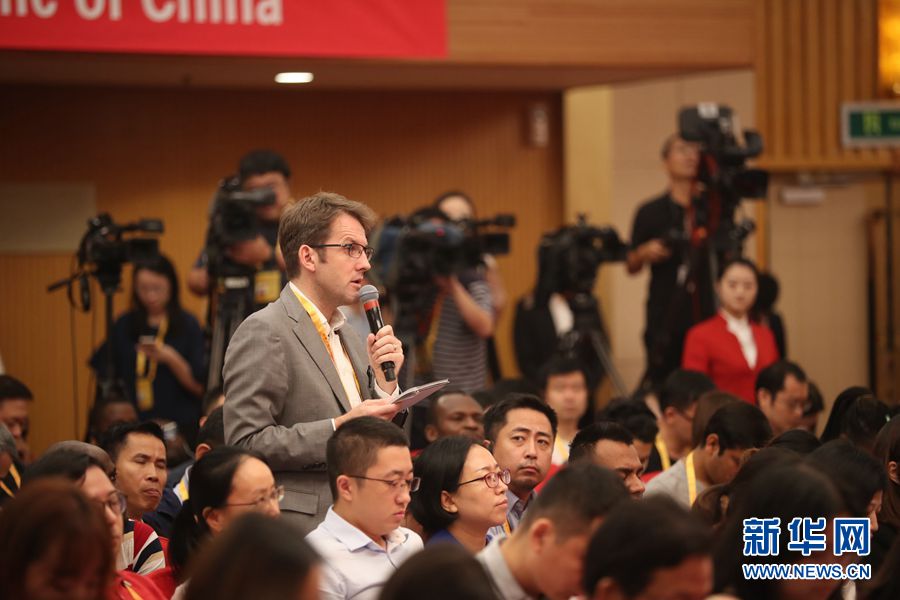 9月24日,慶祝中華人民共和國成立70周年活動新聞中心在北京梅地亞中心二層新聞發布廳舉辦第一場新聞發布會。圖為境外媒體記者提問。新華網記者 陳競超 攝