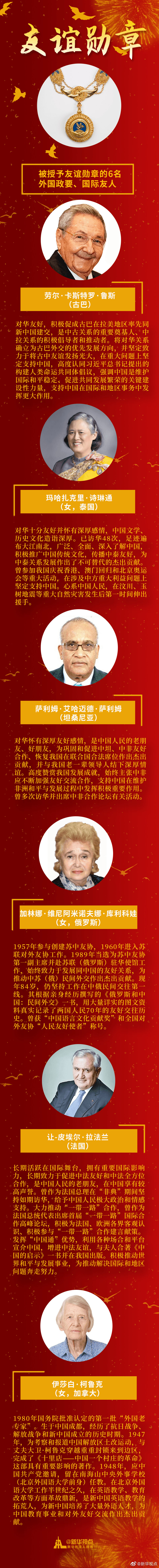 勞爾·卡斯特羅·魯斯、瑪哈扎克里·詩琳通等6人被授予“友誼勛章”。他們與中國結下不解情緣,留下一段段佳話。為他們點贊? ????
