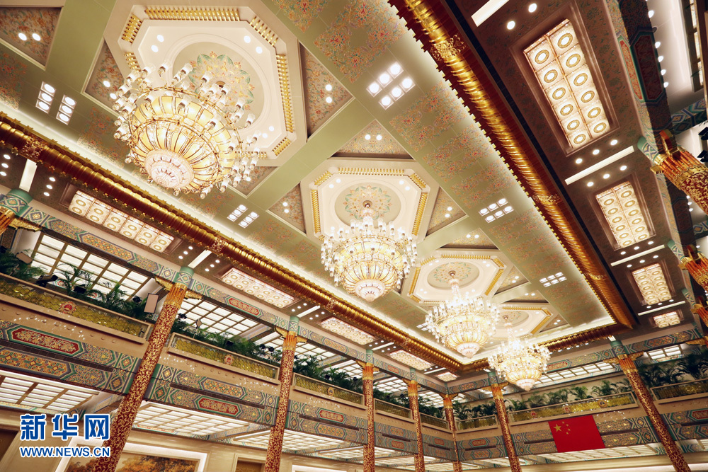 9月29日上午10時,中華人民共和國國家勛章和國家榮譽稱號頒授儀式在人民大會堂隆重舉行。圖為人民大會堂金色大廳。新華網 陳杰 攝