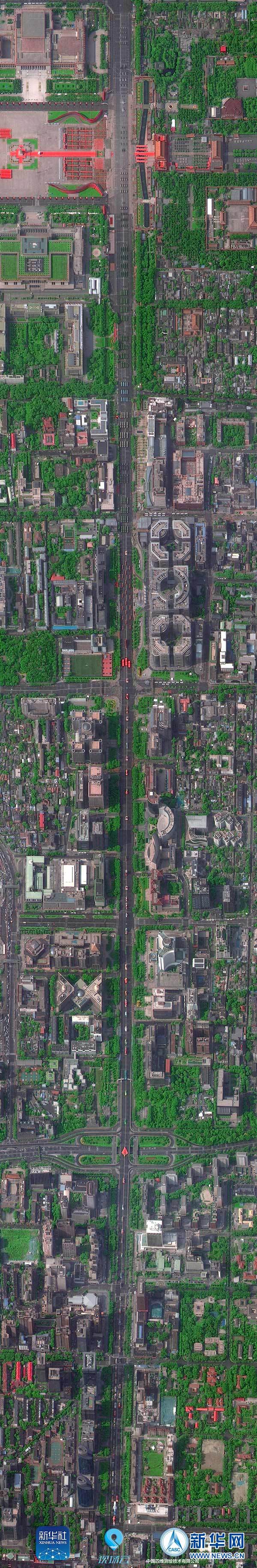 這是“高景1號”拍攝的北京長安街全畫幅衛星圖(10月1日攝)。 10月1日上午,慶祝中華人民共和國成立70周年大會在北京天安門廣場隆重舉行。新華社聯合多家單位調用多顆國產衛星俯瞰閱兵,從“最高機位”發回這三張珍貴的長安街全畫幅衛星圖。 新華社發(中國四維測繪技術有限公司提供)